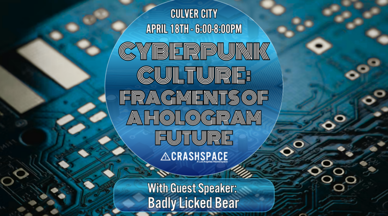 Stop by makerspace CRASH Space LA to hear Badly Licked Bear’s talk during our Cyberpunk Spring series! This talk is free and open to all who live in Los Angeles, and free snacks and drinks will be provided.