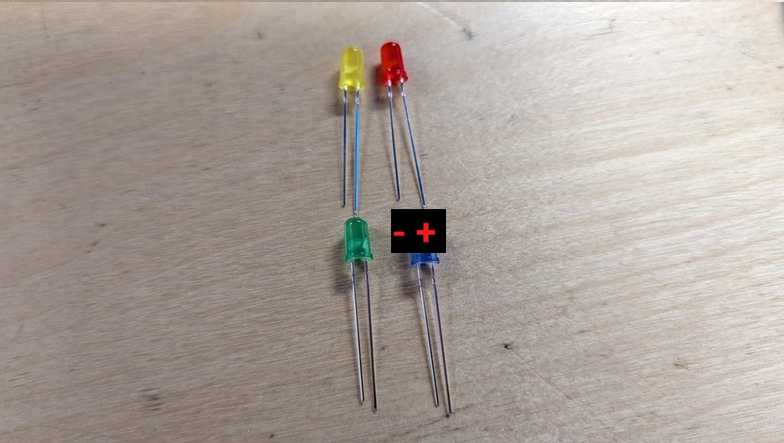 Make sure the legs match the + and − symbols on the board.