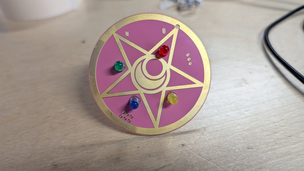 This past winter we received an opportunity from PCBWay where they offered to produce any boards we designed for a learn to solder class. I decided to live my magical girl dreams and design the Crystal Star Compact from Sailor moon!