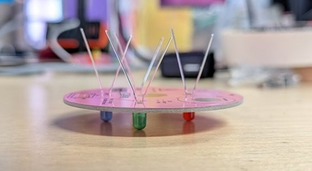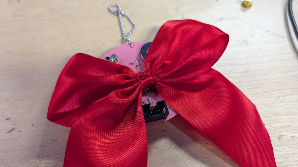 This badge features an ENIG gold-plated finish. While this finish is typically used to prevent corrosion, here it’s also used decoratively to give it an extra shiny look. Just a heads-up—solder will stick to those gold areas just like it does to the pads. Once solder touches them, they’ll turn silver permanently—there’s no way to restore the gold.
