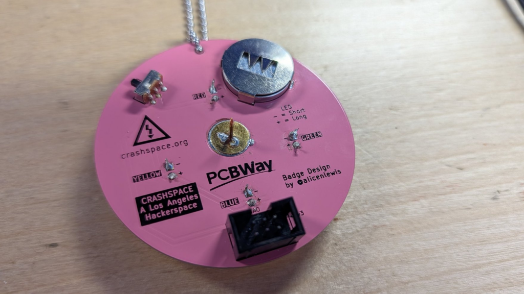 SAO stands for Standard Add-On—a standard used at hacker and maker events for adding small accessories to larger conference badges. By installing this connector, you’ll be able to plug your Crashspace badge into another badge that supports SAOs, like the big ones handed out at events.