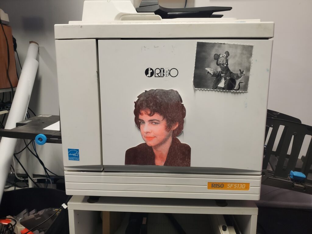 - What it does: a digital duplicator that utilizes a stencil-based printing process, known for its distinctive aesthetic, which includes imperfect registration and bold color combination.