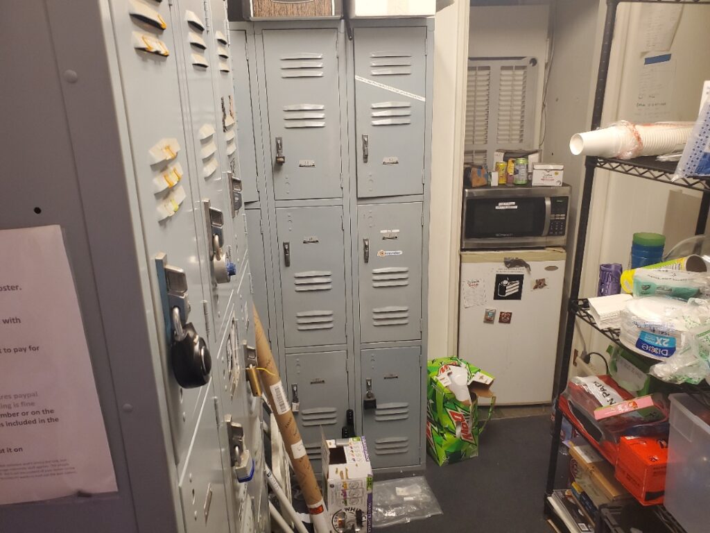Lockers, Fridge, and Snacks