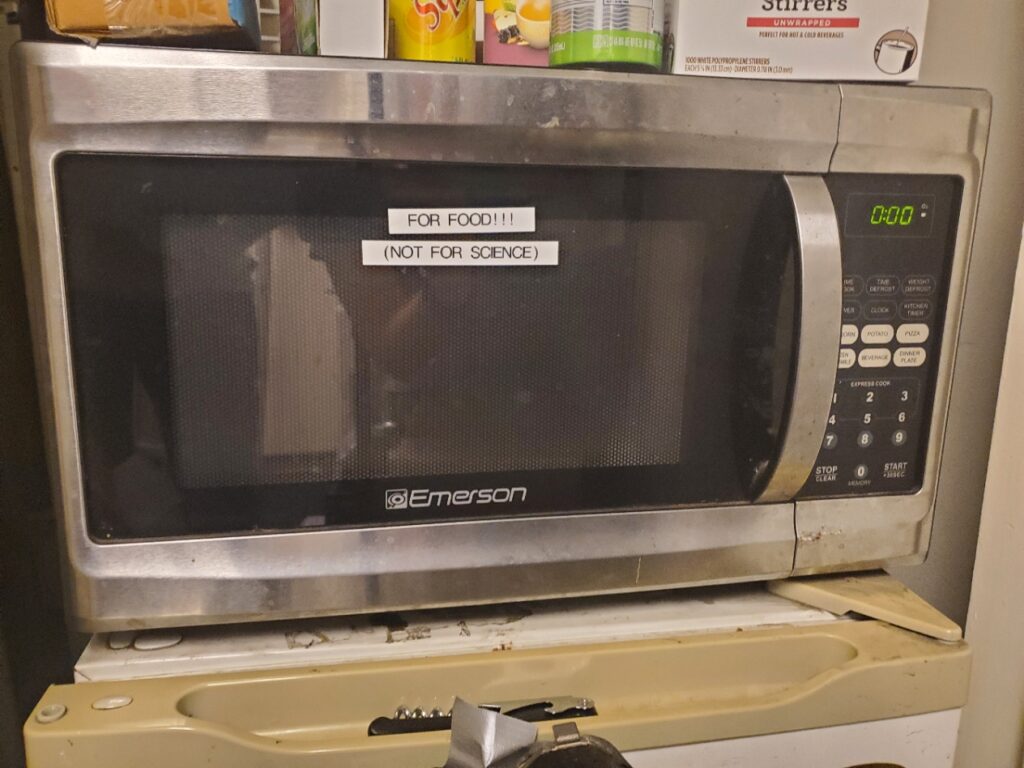 - Notes: The microwave is for food heating up and not for scientific use