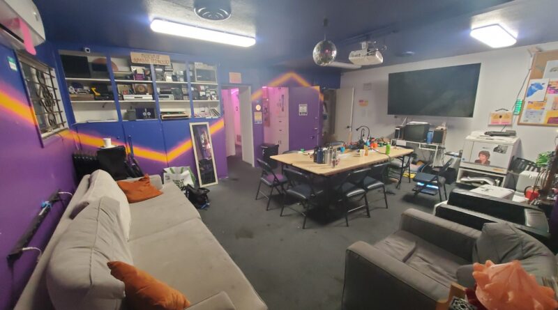 What it is used for: The front room where all public events are held and where most people just hang out and do work together. As the name suggests, the public room is open to all, membership or not. This is the room that is shown in the virtual meeting or where we meet physically, and is a common hangout/open discussion spot for everyone. Feel free to bring your crafts and work alongside or with others, but be mindful if there is a scheduled meeting which has priority over the space/active discussion